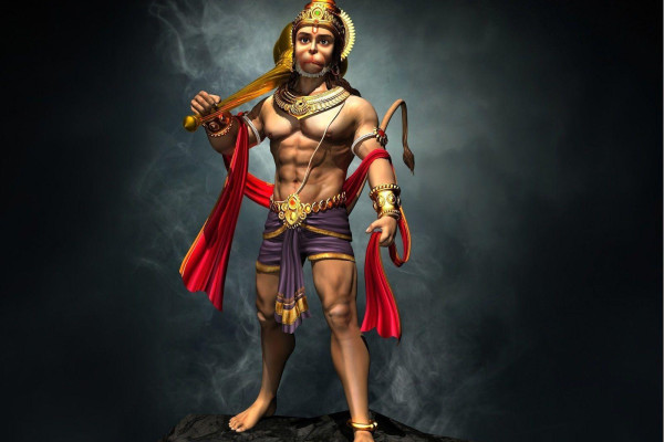 This is the digital wallpaper of bajrangbali in full hd where he is standing tall.
